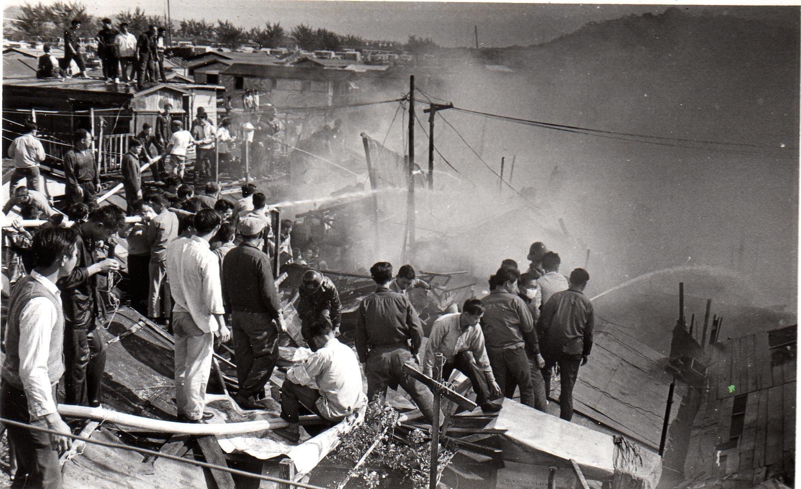街坊們協助消防人員奮力撲火