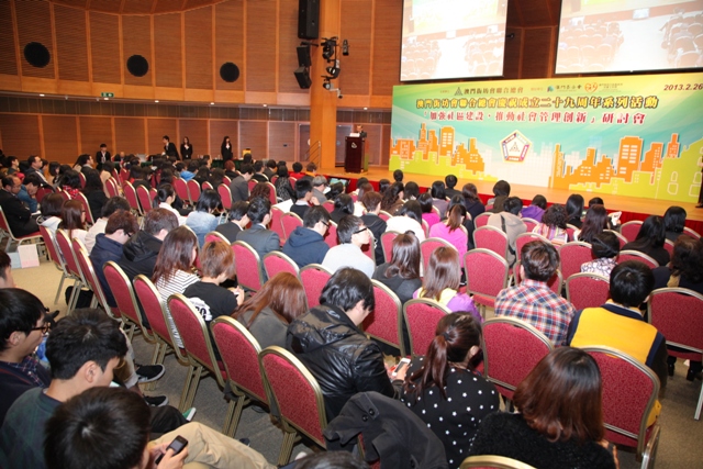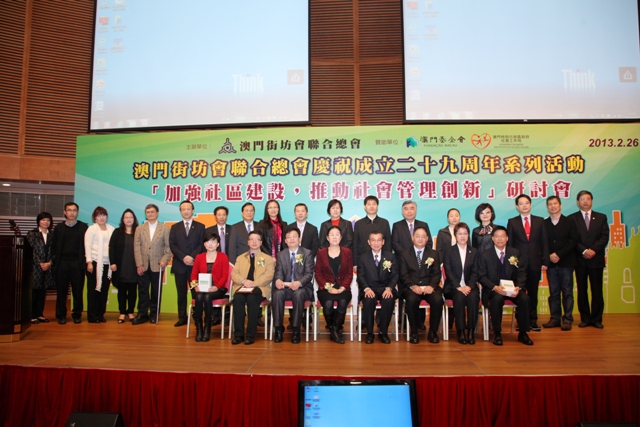 街總昨假科學館會議廳舉行“加強社區建設 · 推動社會管理創新”研討會,邀請國家民政部門及內地高等教育學府代表主講,探討創新社會管理,近百社 區服務人員參與。街總理事長吳小麗認為,社會管理是一項系統工程,特區政府作為社會管理的主導者,應認真思考在“一國兩制”方針指引下,依照基本法,大力 推進社會管理創新,是澳門新時期的發展需要。