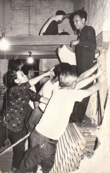 街坊們協助消防人員奮力撲火